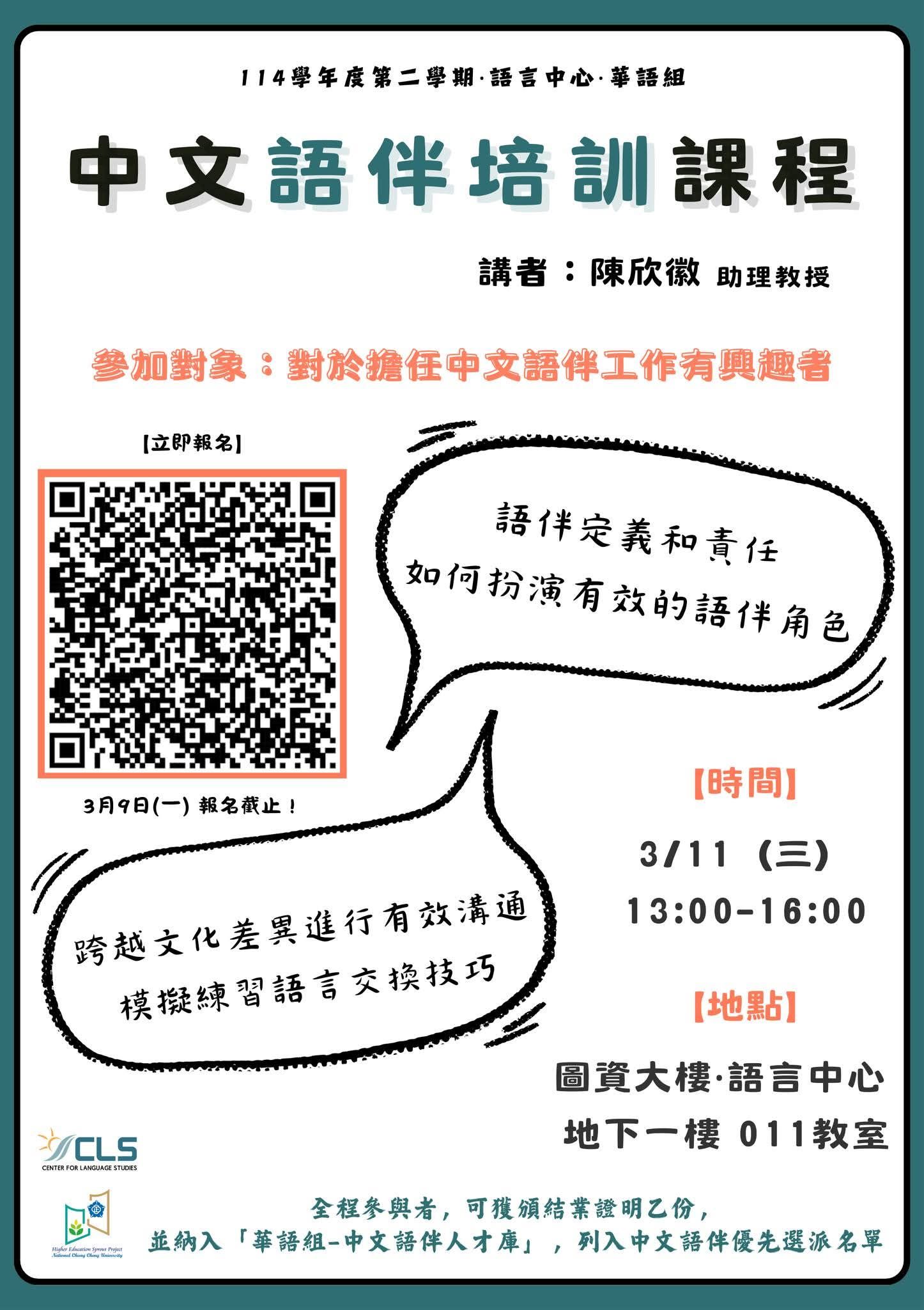 114學年度第2學期,中文「語伴」培訓課程報名開跑囉!